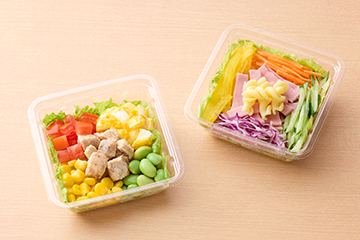 デリア食品が考案したイベント限定オリジナルサラダを無料で提供します(条件あり)※5。目で見て楽しく、食べても食感が楽しい、子ども向けと大人向けのサラダをそれぞれ2種類ずつご用意。マヨネーズやドレッシング、トッピングをお好みで選べます。なくなり次第終了となります。