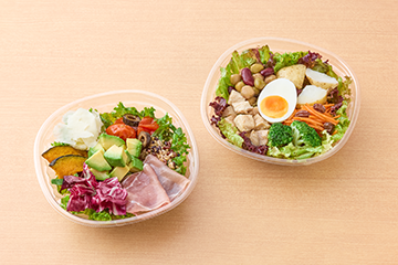 チキンとたまごのパワーサラダ(右)
