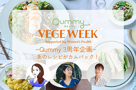 ※2 「VEGE WEEK」は、Qummyとフィットネスやヘルシーフード、ウェルネスを中心に扱うライフスタイルWebマガジン「Women's Health」とのコラボイベントです。https://www.womenshealthmag.com/jp/