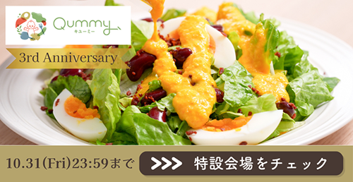 キユーピー株式会社(本社:東京都渋谷区、代表取締役 社長執行役員:髙宮 満、以下キユーピー)は、キユーピー公式食品ECサイト「Qummy(キユーミー)」が3周年を迎えることを記念し、お客さまへの感謝を込めた特別企画を10月31日(金)まで開催します。Qummyは「あなたとつくる、野菜のある食卓。」をコンセプトに2022年9月にオープンしました。オープンしてからのサラダの累計販売数は約57,000食※1に上り、多くのお客さまに野菜のある食卓作りのお手伝いをしてきました。