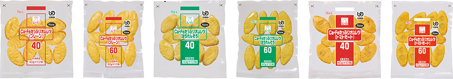 給食業態では、調理工程が簡単で、設備環境に配慮した商品が求められています。本シリーズは、10個が1袋に入ったタイプ、100個入りのバラタイプの荷姿があり、さらにそれぞれ1個あたり40gと60gのサイズがあります。食べる量、調理現場のオペレーションに合わせて使い分けることができます。