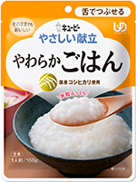 主食部門 審査員特別賞 「やさしい献立 やわらかごはん」 UDFの「舌でつぶせる」に区分され、国産コシヒカリを使用し、お米の香りと甘みをいかしたやわらかごはんです。パサつきや粘りが出ないよう、また糊っぽくなく、かつ水っぽくない仕立てに工夫しています。賞味期間は25カ月(常温)です。 |