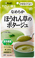 副菜部門 入賞 「やさしい献立 なめらかほうれん草のポタージュ」 ほうれん草にじゃがいもととうもろこしを加え、なめらかに裏ごししたUDFの「かまなくてよい」区分の商品です。バターが香る、食べやすいポタージュです。食物繊維とカルシウム、鉄分に配慮しており、賞味期間は19カ月(常温)です。 |
