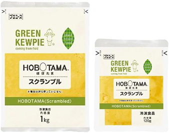 2021年に発売した業務用商品「HOBOTAMA」※4は、スクランブルエッグのような見た目と食感、シェフが手作りしたような半熟感を再現しています。豆乳加工品をベースとした独自配合で、卵の加工技術・マヨネーズ作りで培った乳化技術などを生かし、約2年間かけて開発しました(特許取得済)。プラントベースフードを提供するホテルや飲食店のほか、食物アレルギーの観点から、保育園や幼稚園の給食などで採用いただいています。